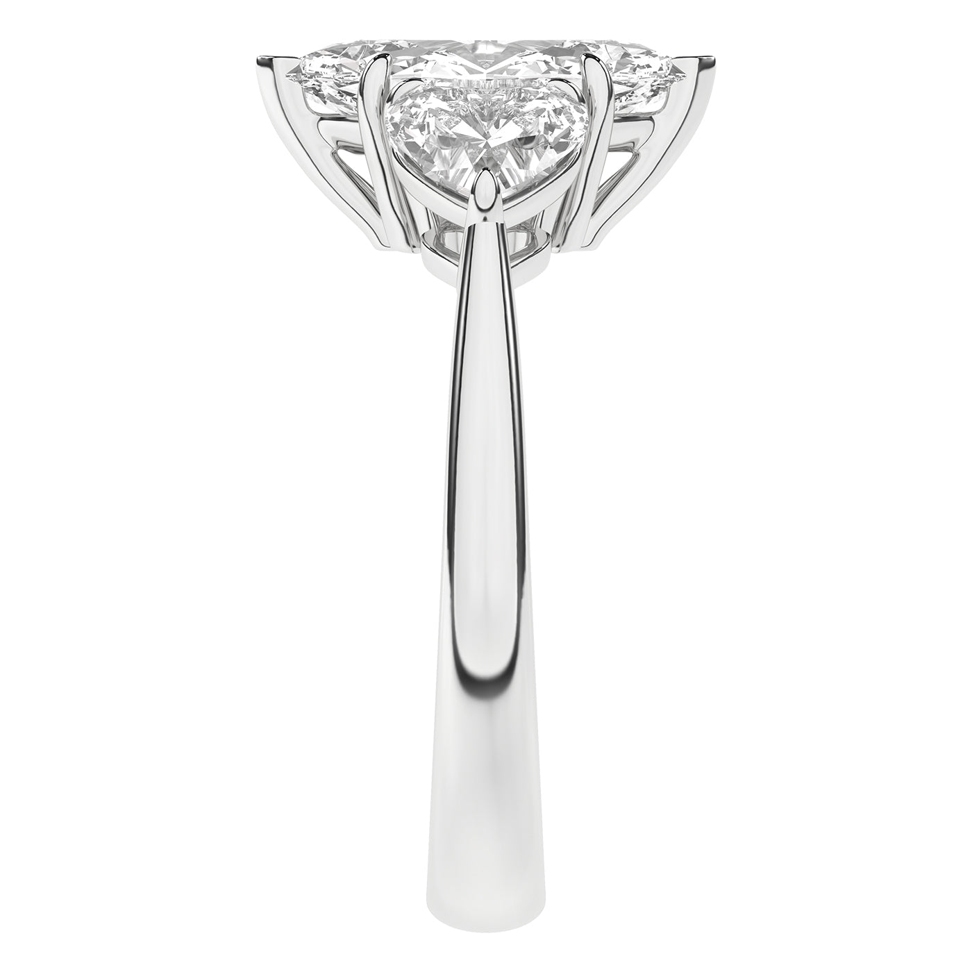 A romantic 3 cttw design, this ring showcases a captivating heart-shaped diamond accented by elegant marquise side stones. The distinctive combination creates a graceful silhouette, blending timeless charm with striking individuality.