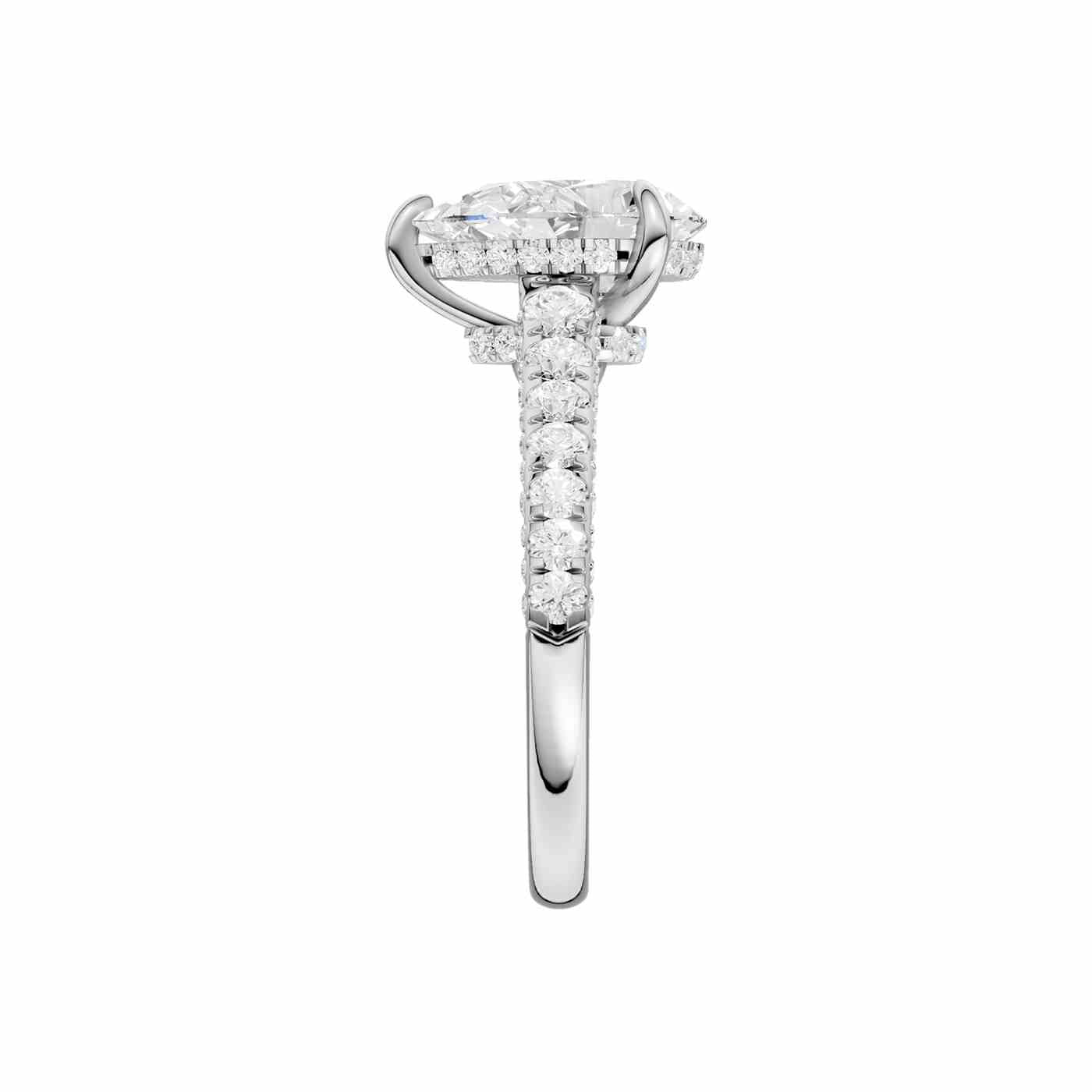 Available in Asscher, Baguette, Emerald, Kite, Oval, Pear, Radiant, Round, Taper, and Trapezoid cuts, the Aureliar Ring collection features exquisite craftsmanship that captures the essence of elegance. Each ring, a testament to beauty, glimmers with the promise of sophistication, inviting you to embrace your unique style. The Aureliar Ring | Pear Cut features a stunning 2 3/4 cttw, uniquely showcasing the graceful silhouette of the pear shape amidst exquisite craftsmanship. Weight (18k): 3.85 g